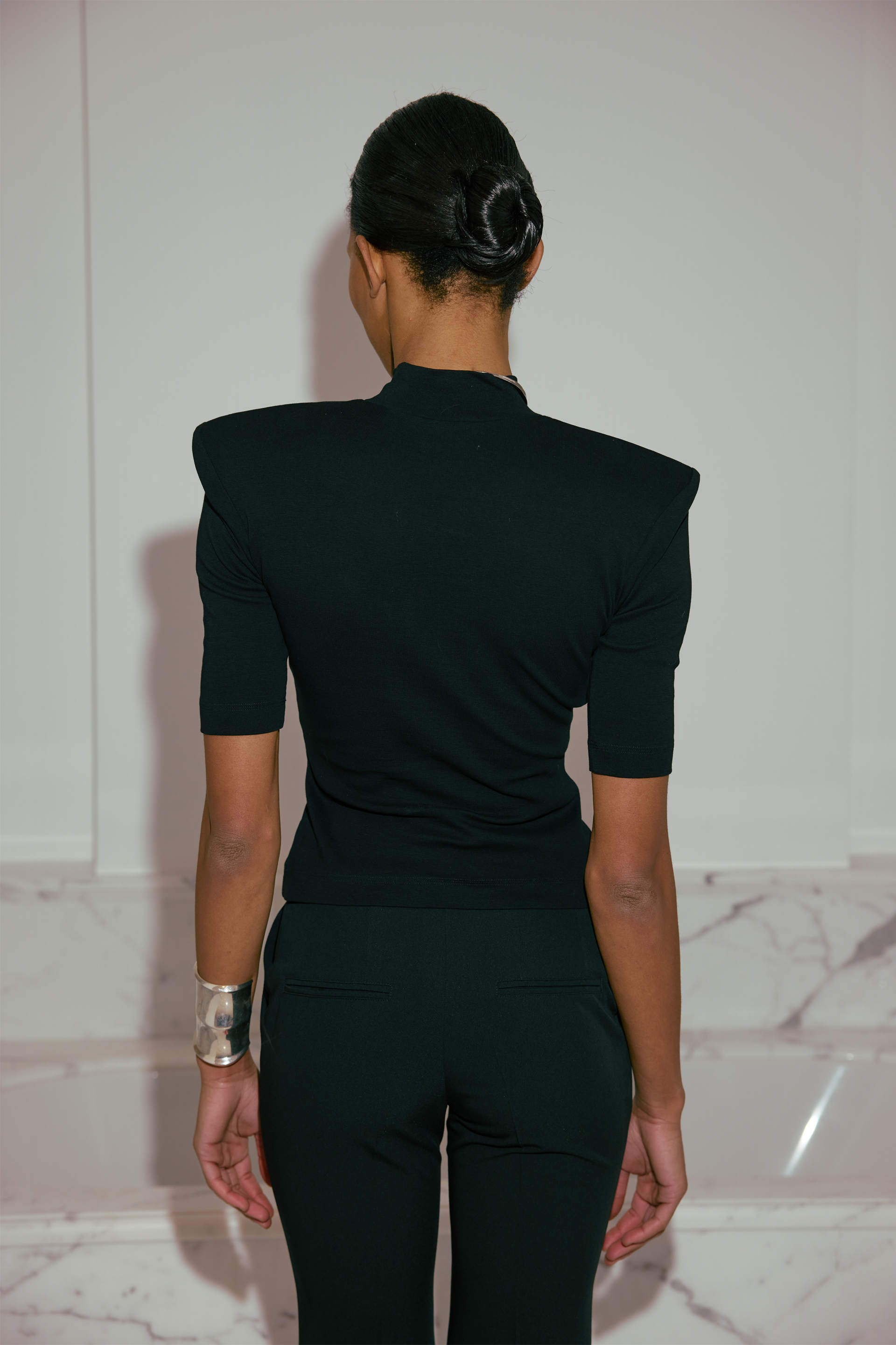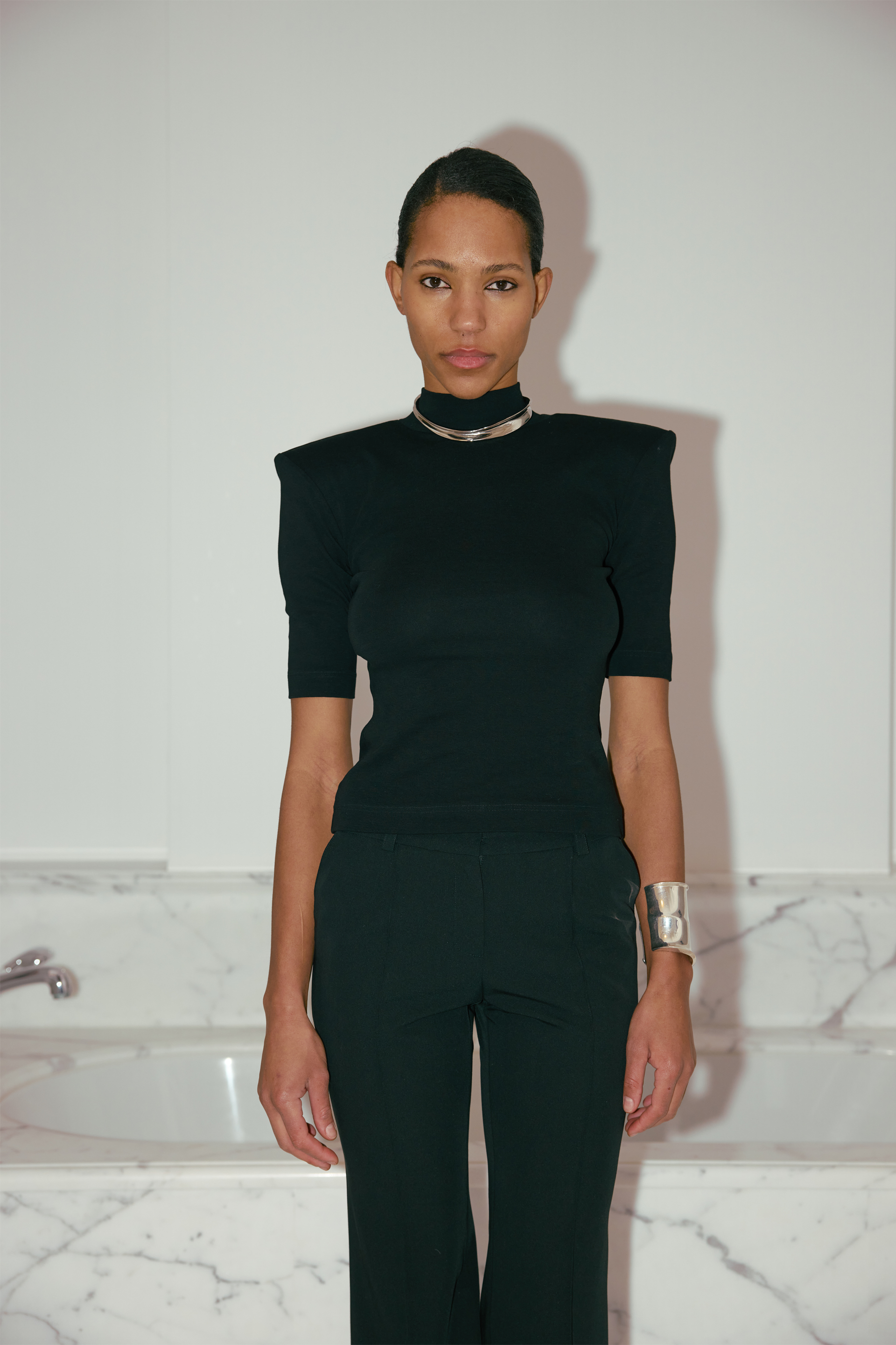 Топ Fearless — стильна футболка з підплічниками та горлом-стійкою, виконана з бавовни та еластану. Легка та приємна на дотик тканина забезпечує комфорт, а підплічники додають структурованості і сміливого вигляду. Горло-стійка підкреслює елегантність і сучасний стиль, роблячи цей топ універсальним для різних образів — від класичних до більш оригінальних і трендових.