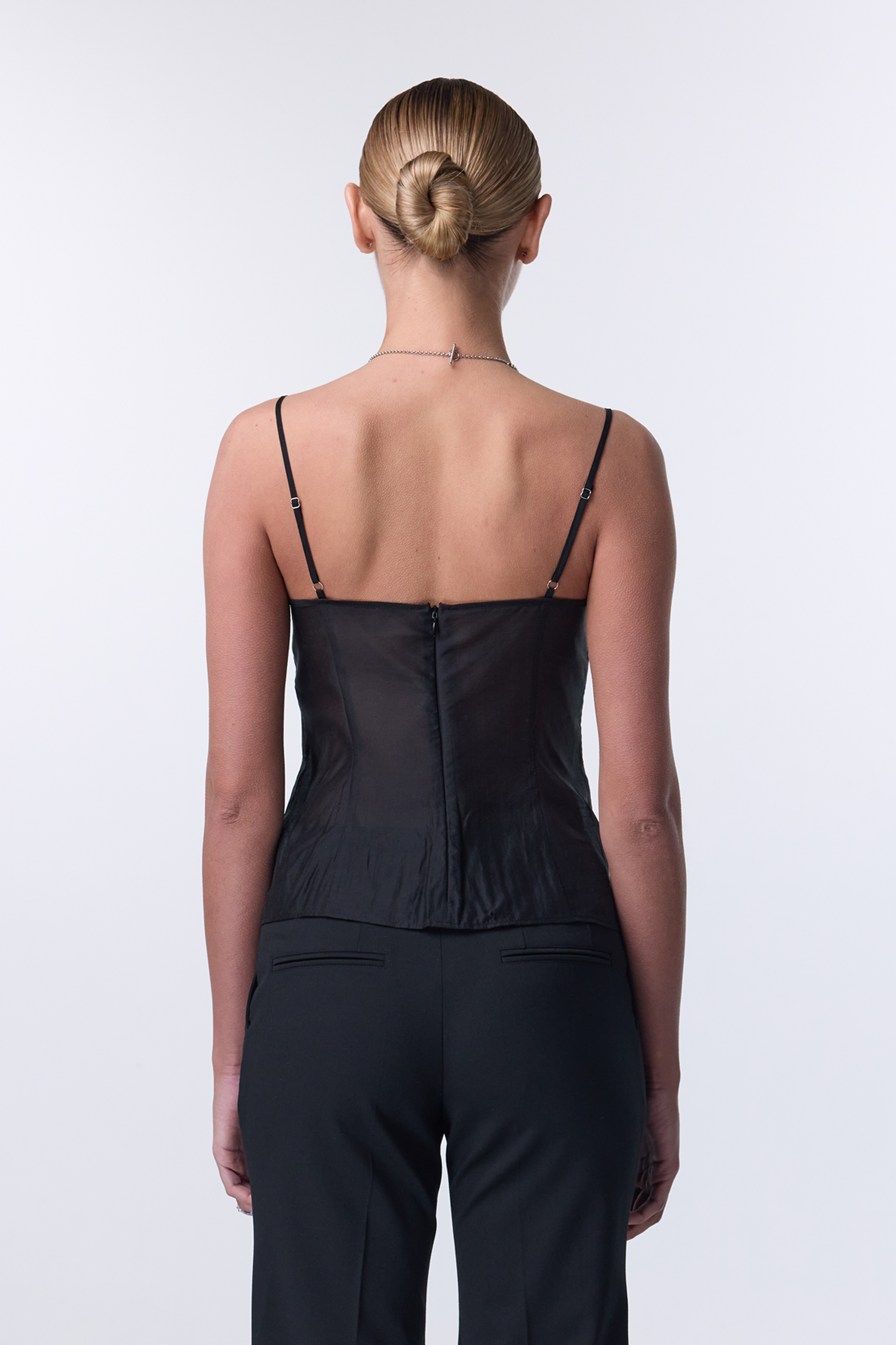 | Розмір | Об'єм грудей (см) | Об'єм талії (см) | Об'єм по низу (см) | Довжина виробу спереду (см) | Довжина виробу по середньому шву спинки (см) |