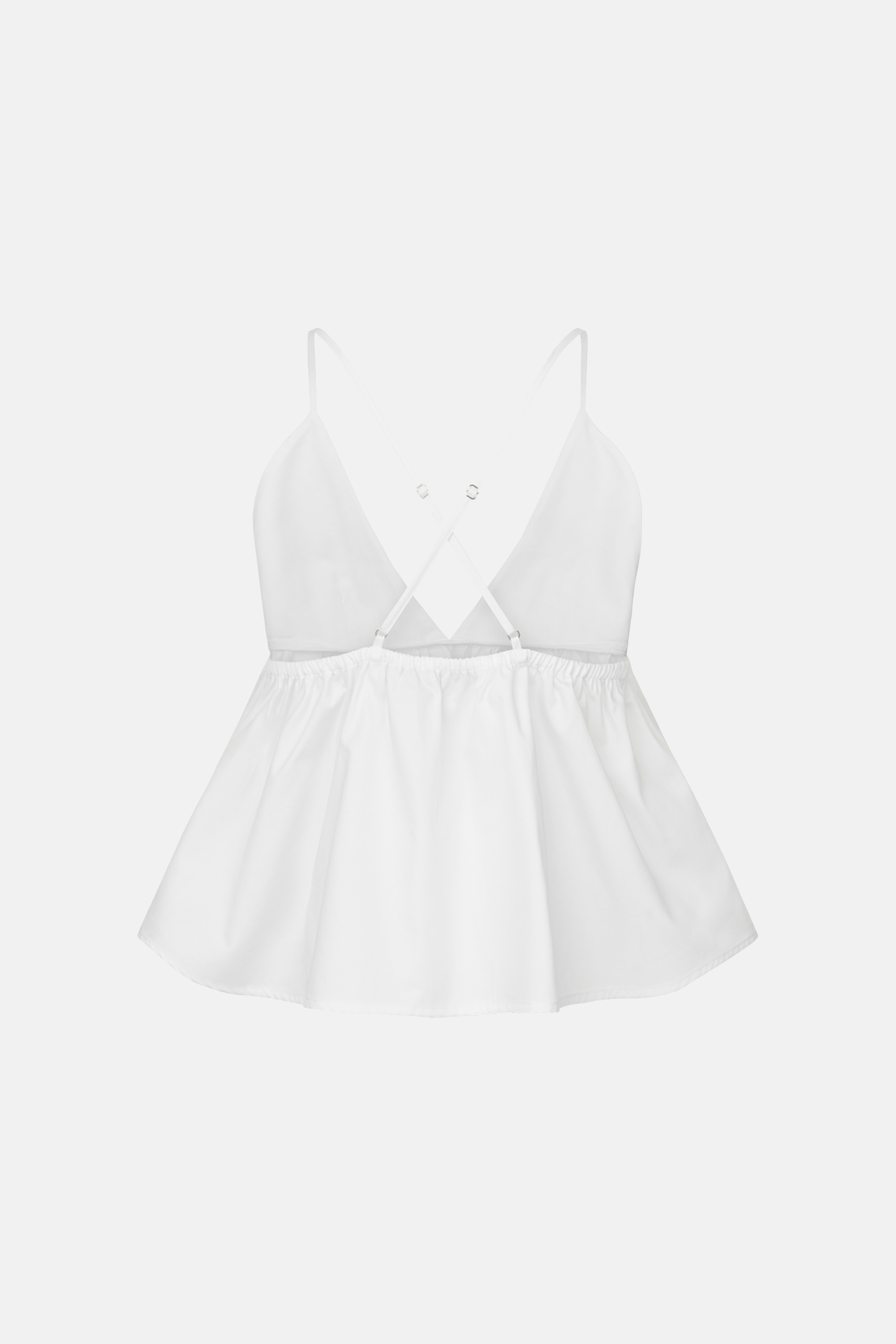 Топ Whipped Cream — ніжний акцент у сучасному гардеробі. Виконаний із натуральної бавовни, він поєднує легкість і комфорт із витонченим дизайном. Тонкі бретелі та глибокий виріз підкреслюють лінію плечей, а м’який об’єм створює жіночний, повітряний силует. Ідеальний для літніх образів із відчуттям свободи.