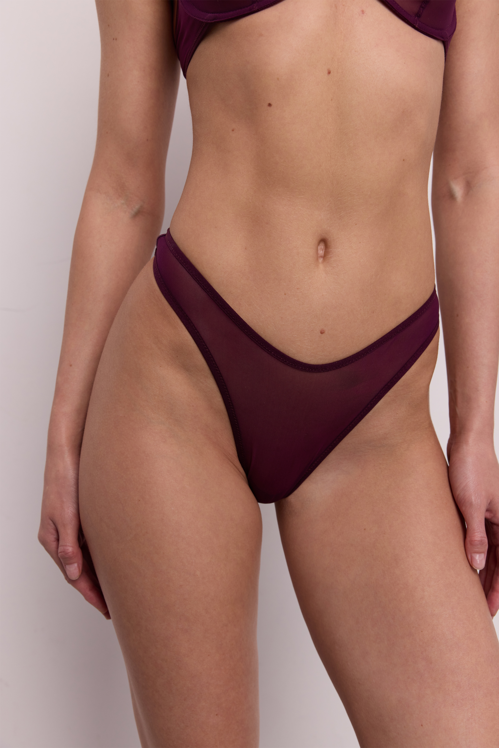 Moonrise thong — про баланс між ніжністю та характером. Витончена лінія вирізу, прозора фактура й м’яка посадка формують образ, у якому комфорт поєднується з чуттєвістю. Непомітні зовні, але виразні за настроєм — для себе і про себе.