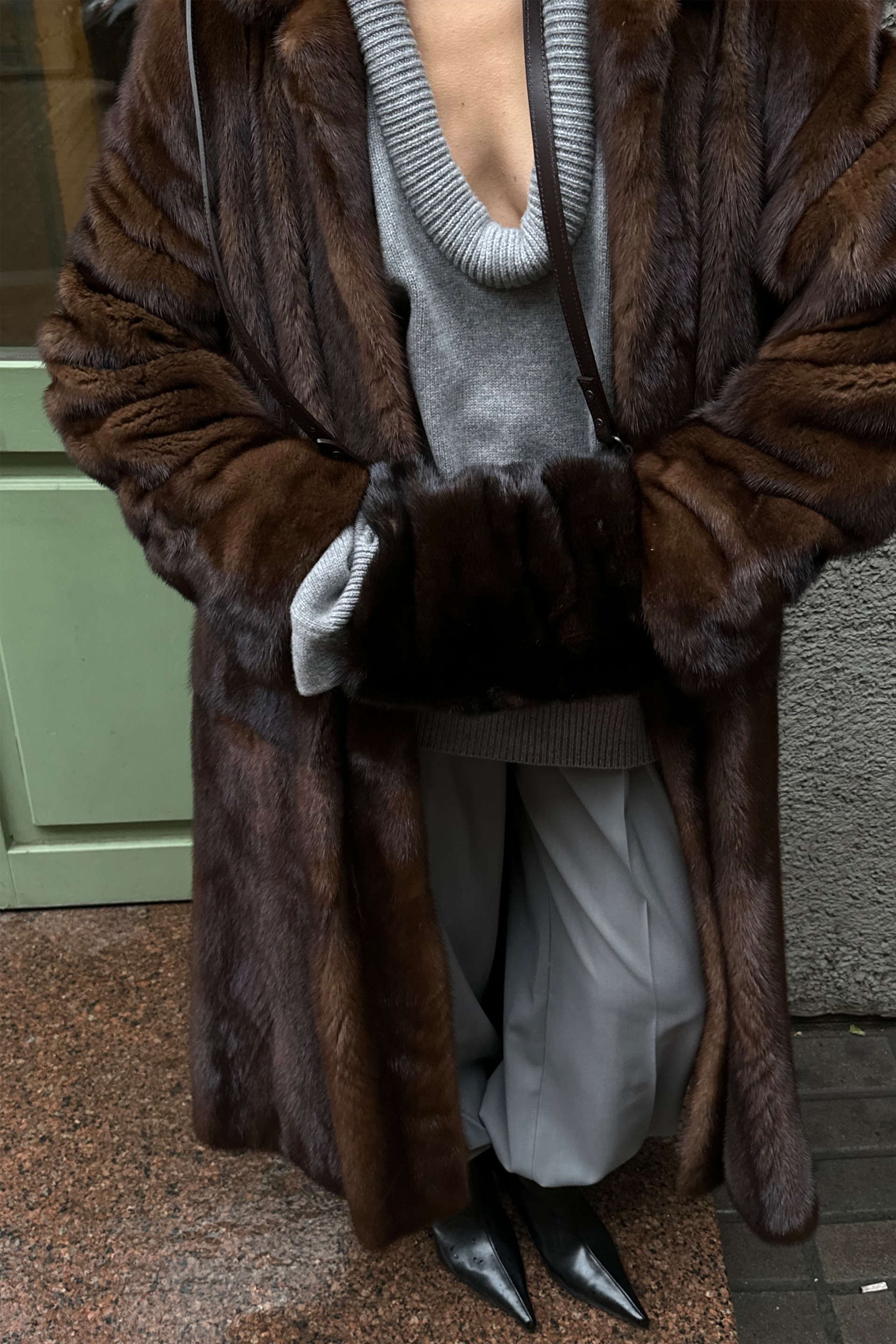 Муфта з ремінцем і природним блиском хутра — вишуканий аксесуар для холодного сезону. Виготовлена з натурального хутра норки, вона дарує тепло, м’якість і додає образу статусності. Ефектно доповнює класичне пальто, лаконічний жакет або сукню, залишаючи акцент на деталях.
