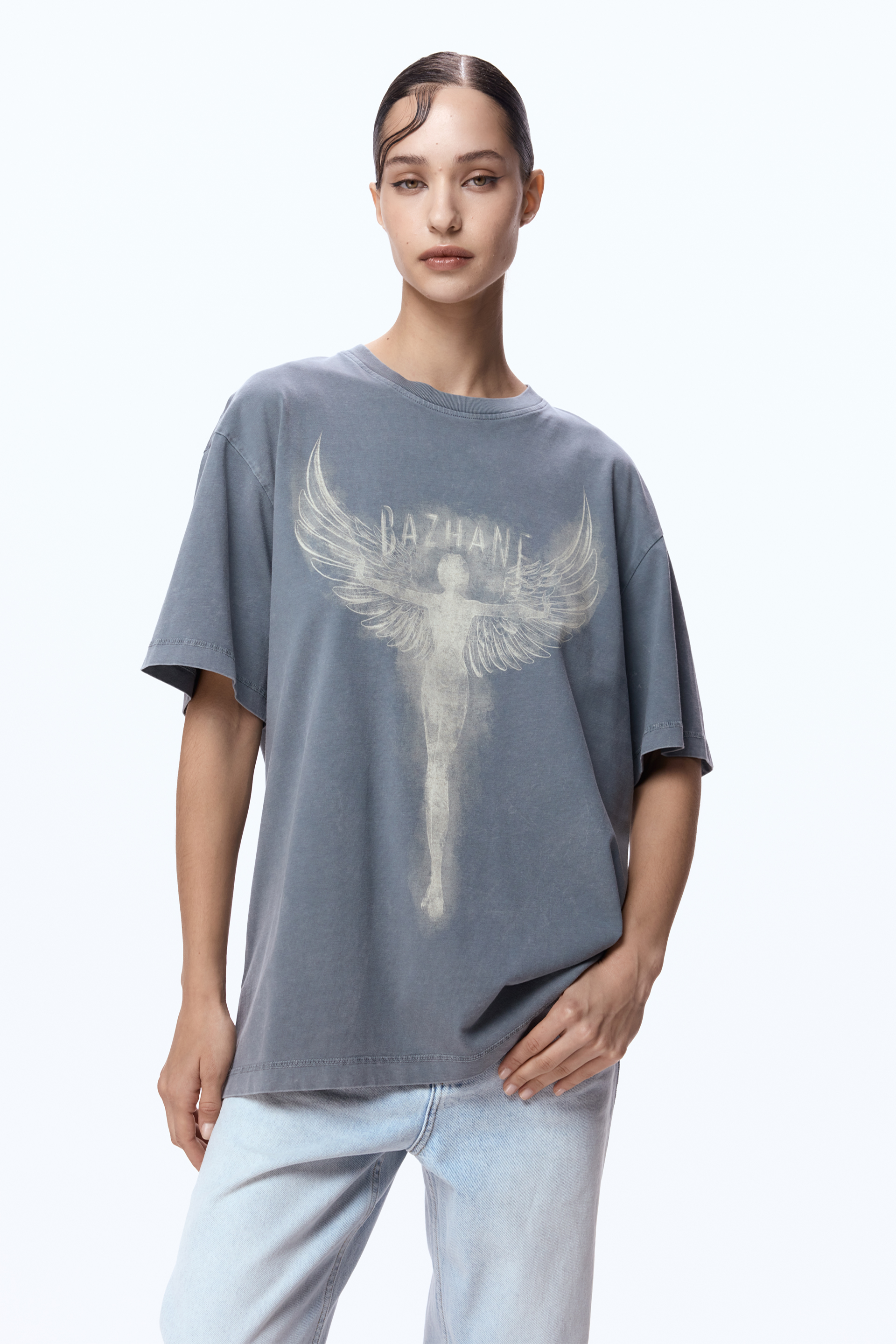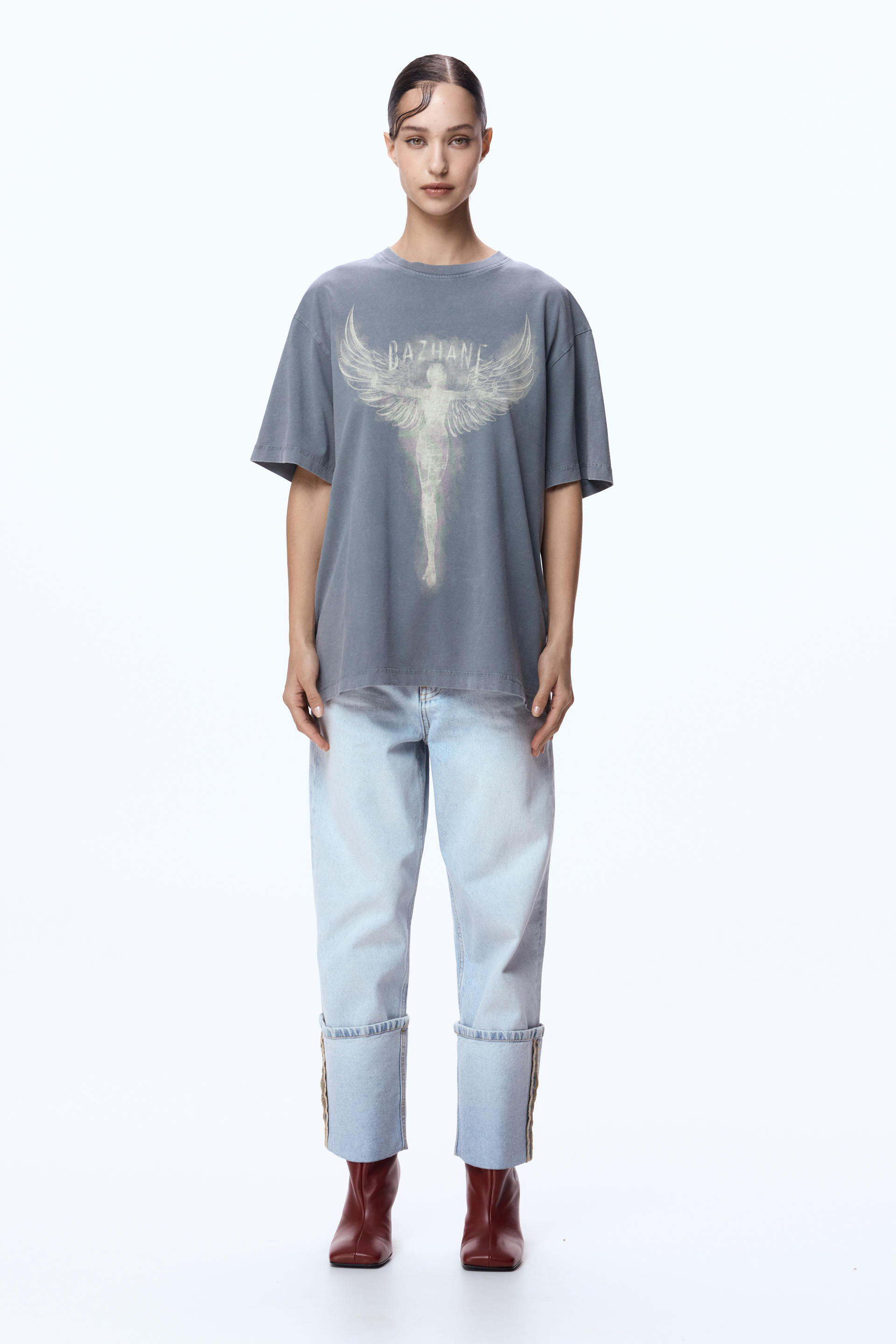Футболка оверсайз вінтаж з принтом "Янгол"