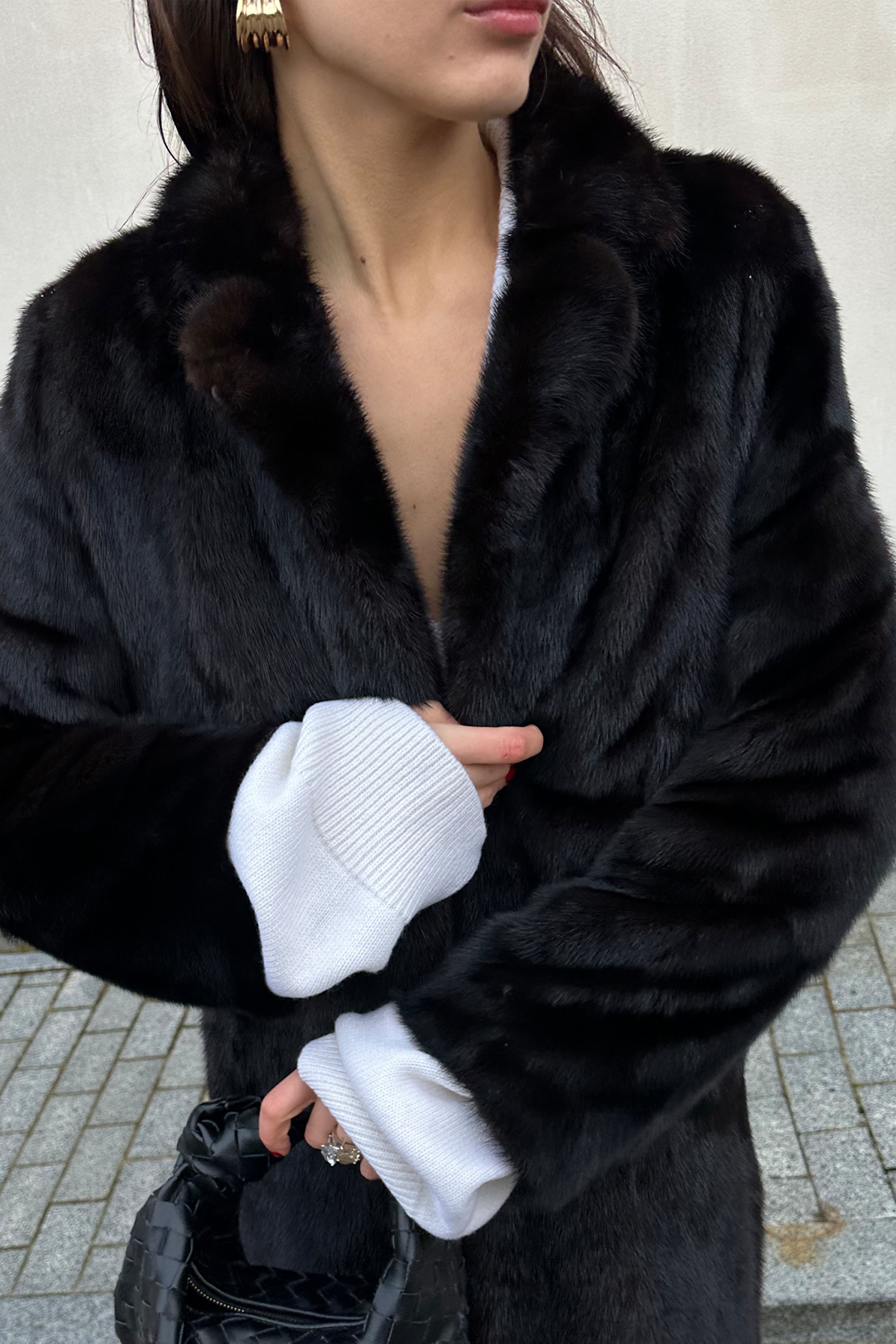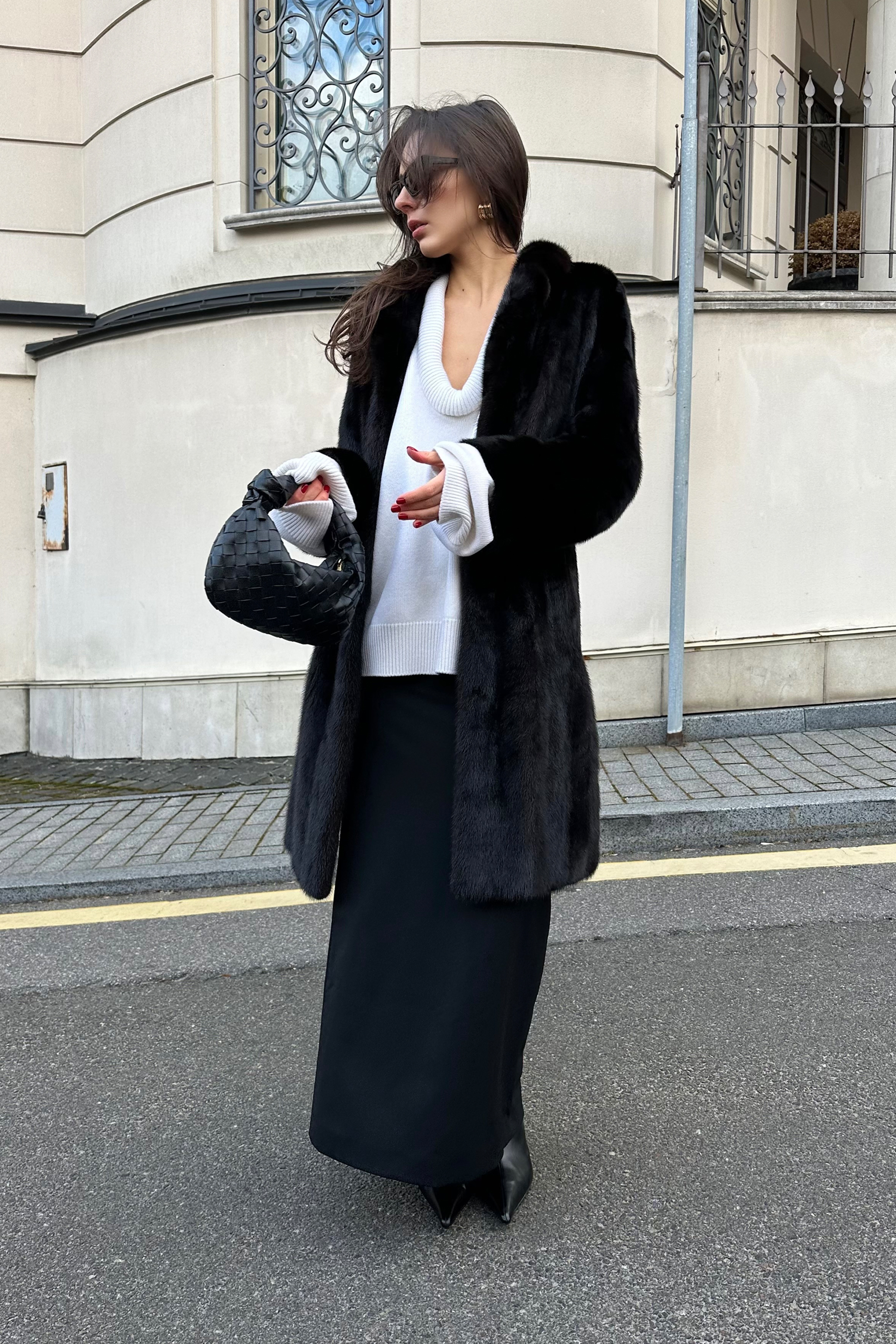 Темно-коричнева шуба з натурального хутра Saga Furs від BAZHANE Vintage — втілення стриманої елегантності. Напівприталений крій з англійським коміром додає образу лаконічного шику, а хутро норки забезпечує тепло й преміальну якість. Ця модель ідеально підходить для холодного сезону, легко поєднуючись із базовими трикотажними речами та аксесуарами у мінімалістичному стилі.