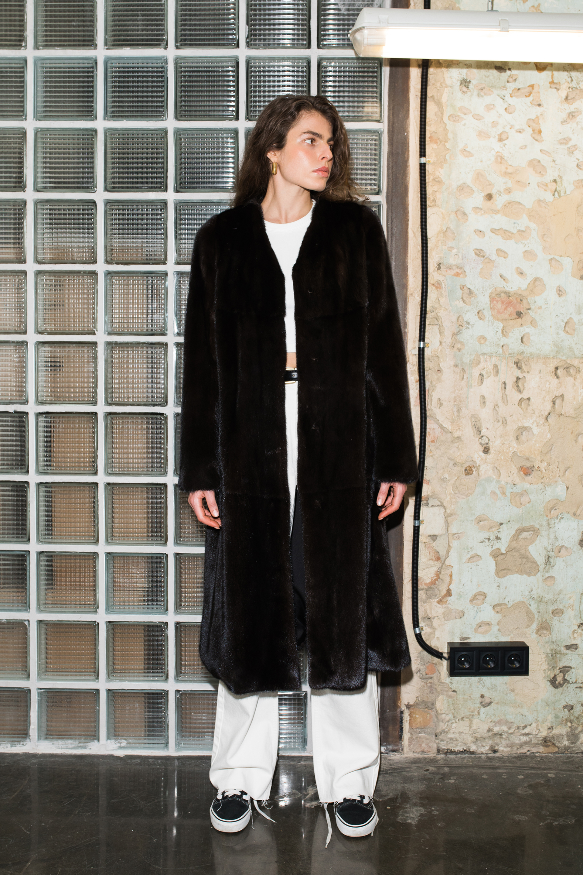 Натуральна шуба з хутра норки з V-подібним вирізом — елегантний вибір для створення вишуканого зимового образу. Виготовлена з преміального хутра норки, вона дарує тепло, м’якість і комфорт у холодну пору року. Глибокий темно-коричневий відтінок — додає розкішного звучання та універсальності. Шуба чудово поєднується з класичним взуттям і аксесуарами — створюючи завершений та витончений вигляд.