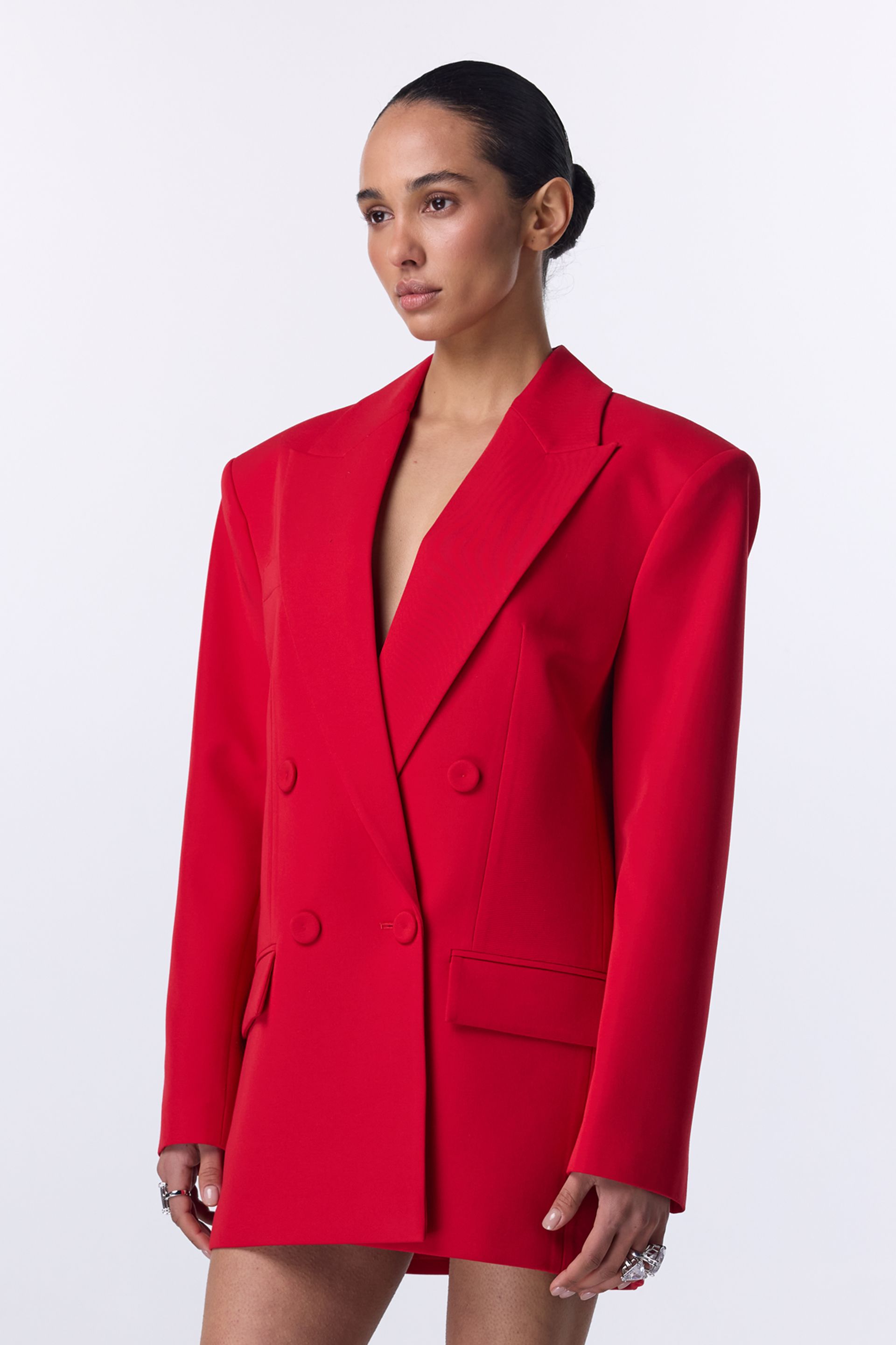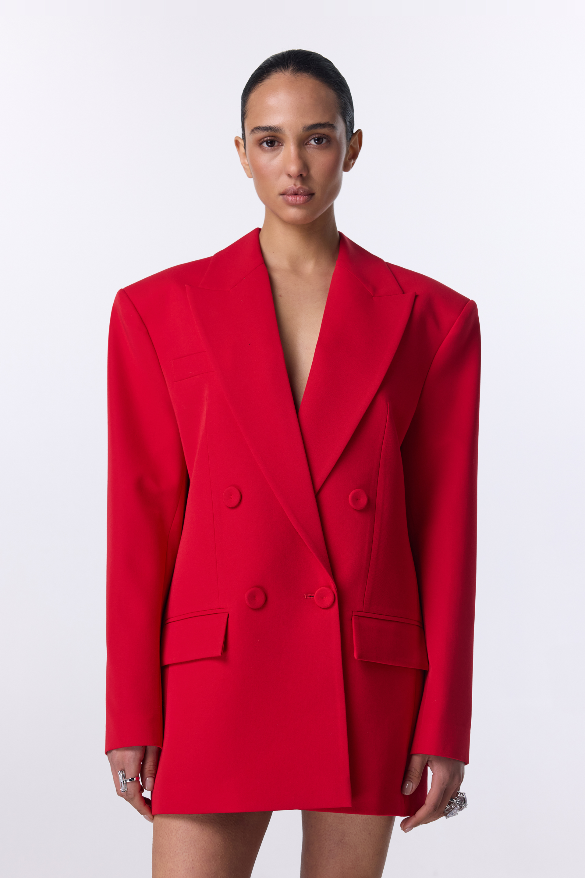 Жакет двобортний оверсайз з підплічниками. Виготовлений з міксу віскози, бавовни та еластану, що забезпечує комфорт. Ідеальний вибір для створення стильних образів на щодень або для особливих випадків. Гармонійно виглядає з брюками, спідницями або лонгслівами.