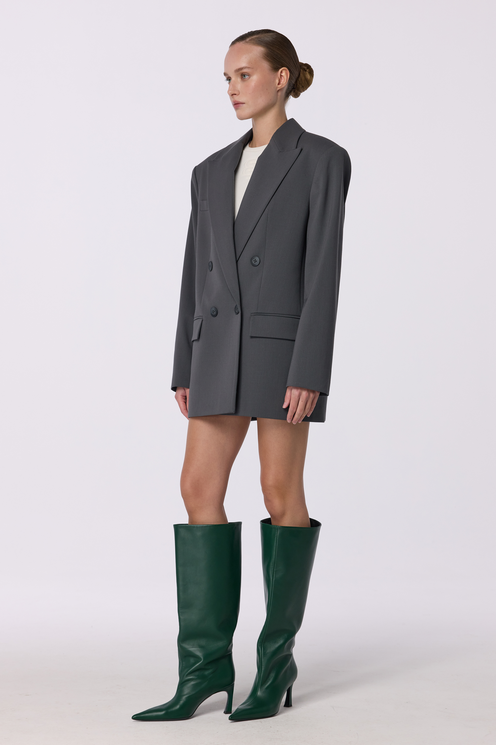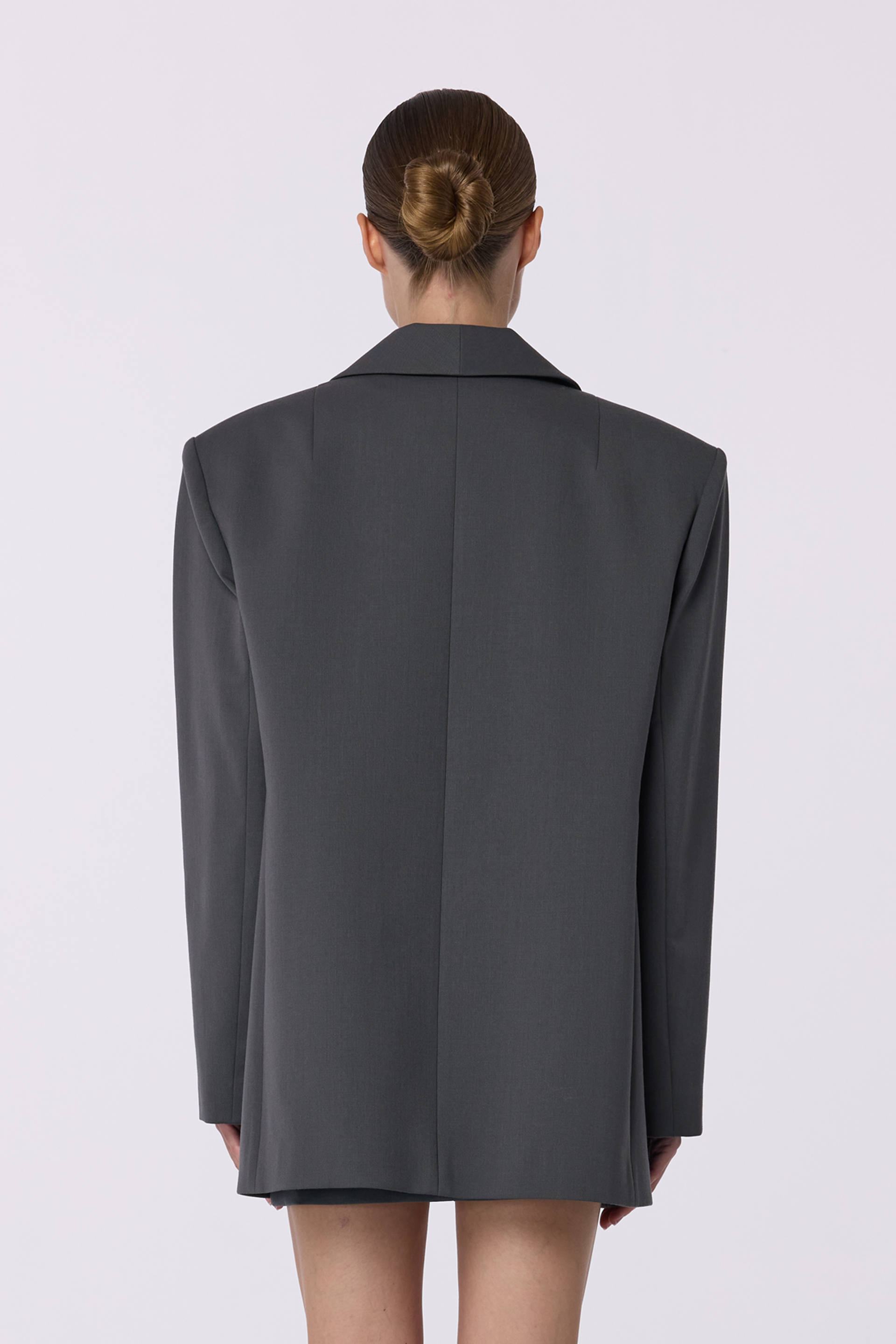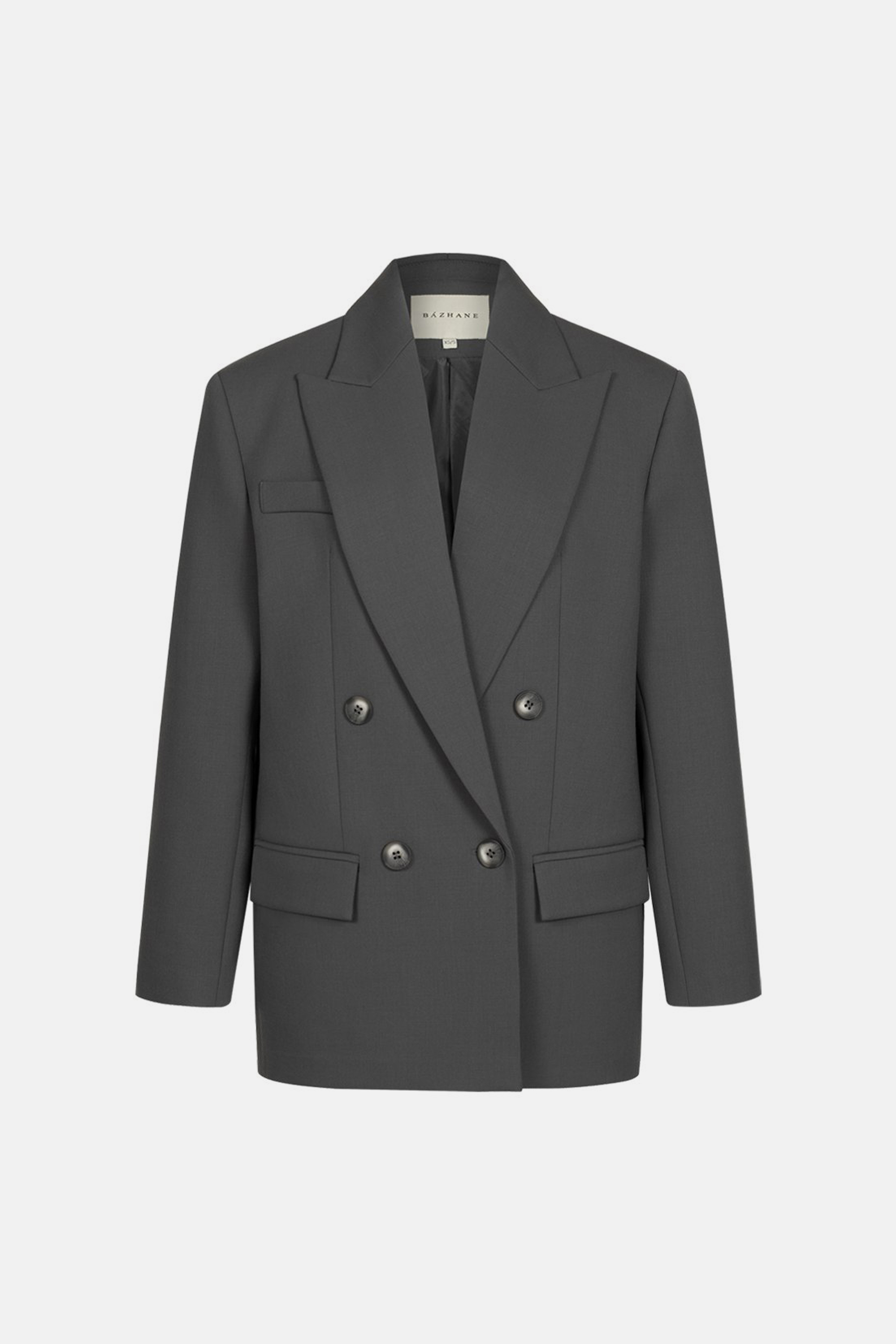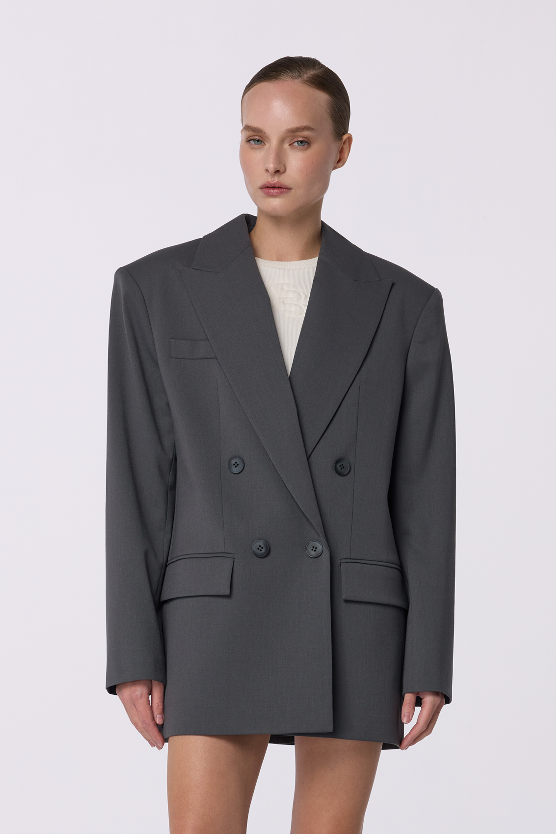 Жакет двобортний оверсайз з підплічниками. Виготовлений з virginwool, що забезпечує тепло та комфорт. Ідеальний вибір для створення елегантних образів на кожен день.
