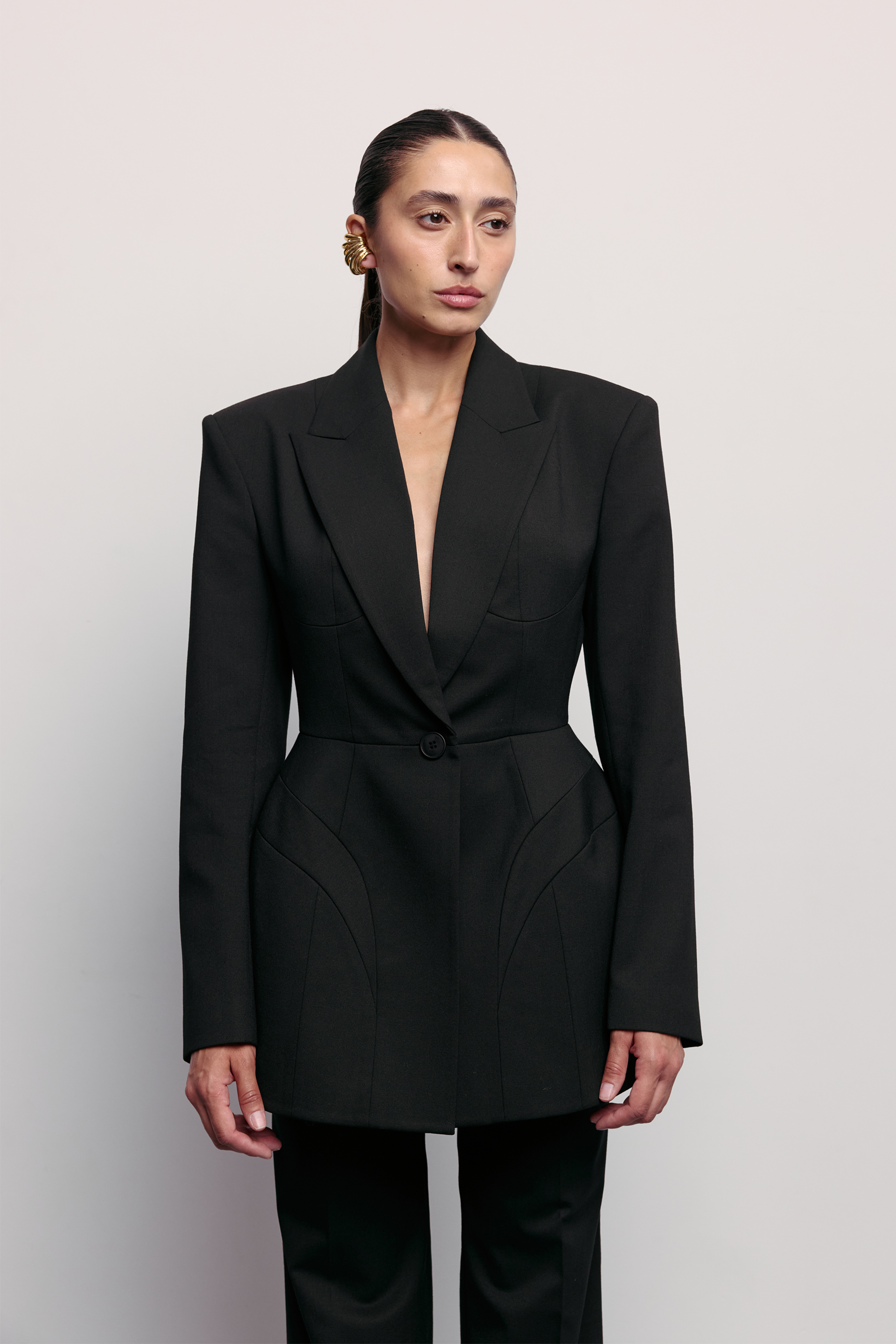 Жакет Noir з міксу віскози, котону та еластану, що забезпечує комфорт, гарну посадку та елегантність. Класичний чорний колір і стильний фасон додають витонченості та універсальності. Ідеальний вибір для офісних образів або вечірніх виходів. Гармонійно поєднується з брюками, спідницями або елегантними аксесуарами для завершеного вигляду.