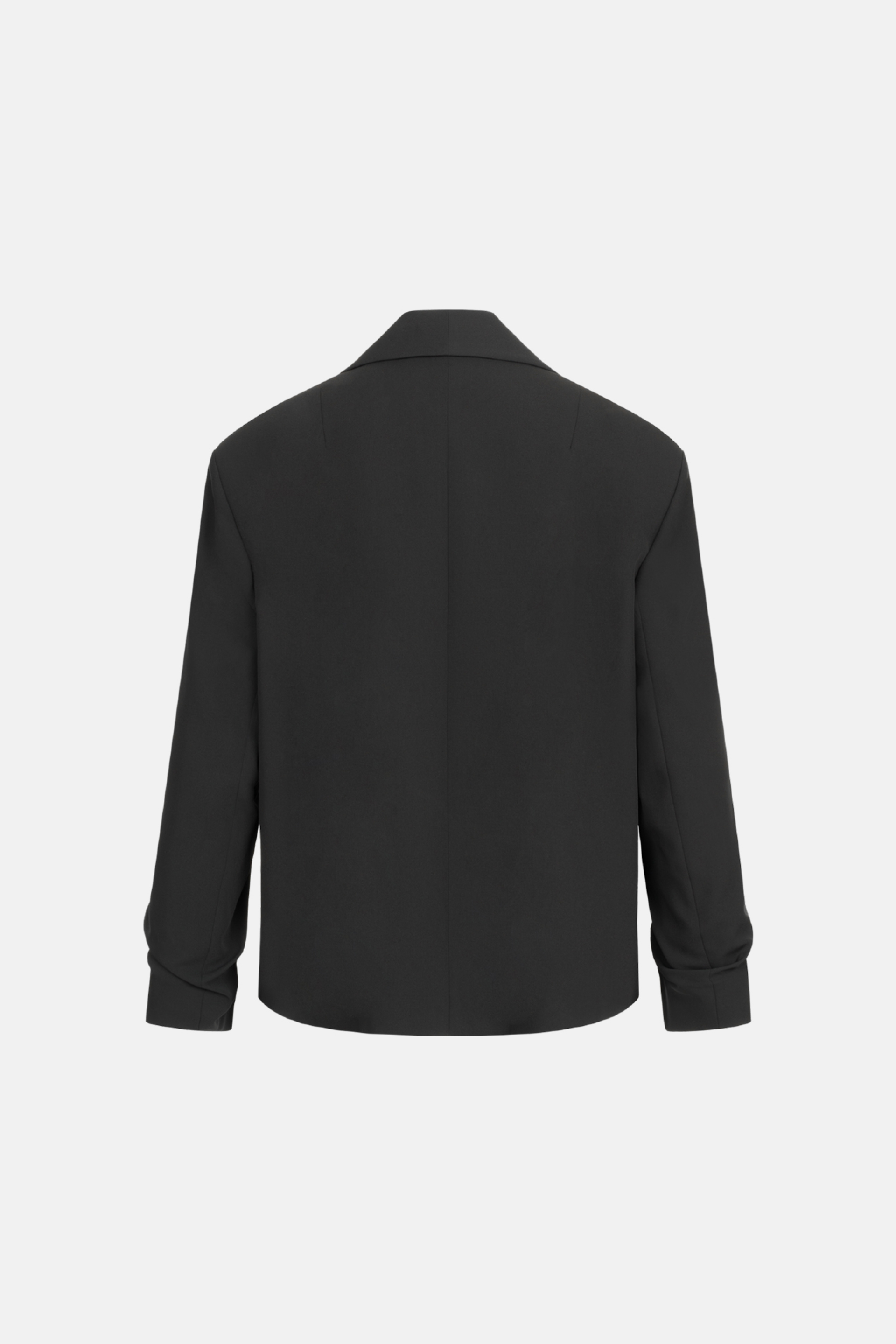 Жакет оверсайз зі збіркою на рукаві. Виготовлений з міксу віскози, бавовни та еластану, що забезпечує комфорт та еластичність. Ідеальний вибір для створення сучасних і стильних образів у будь-яку пору року. Гармонійно виглядає з брюками, спідницями або лонгслівами для завершеного вигляду.