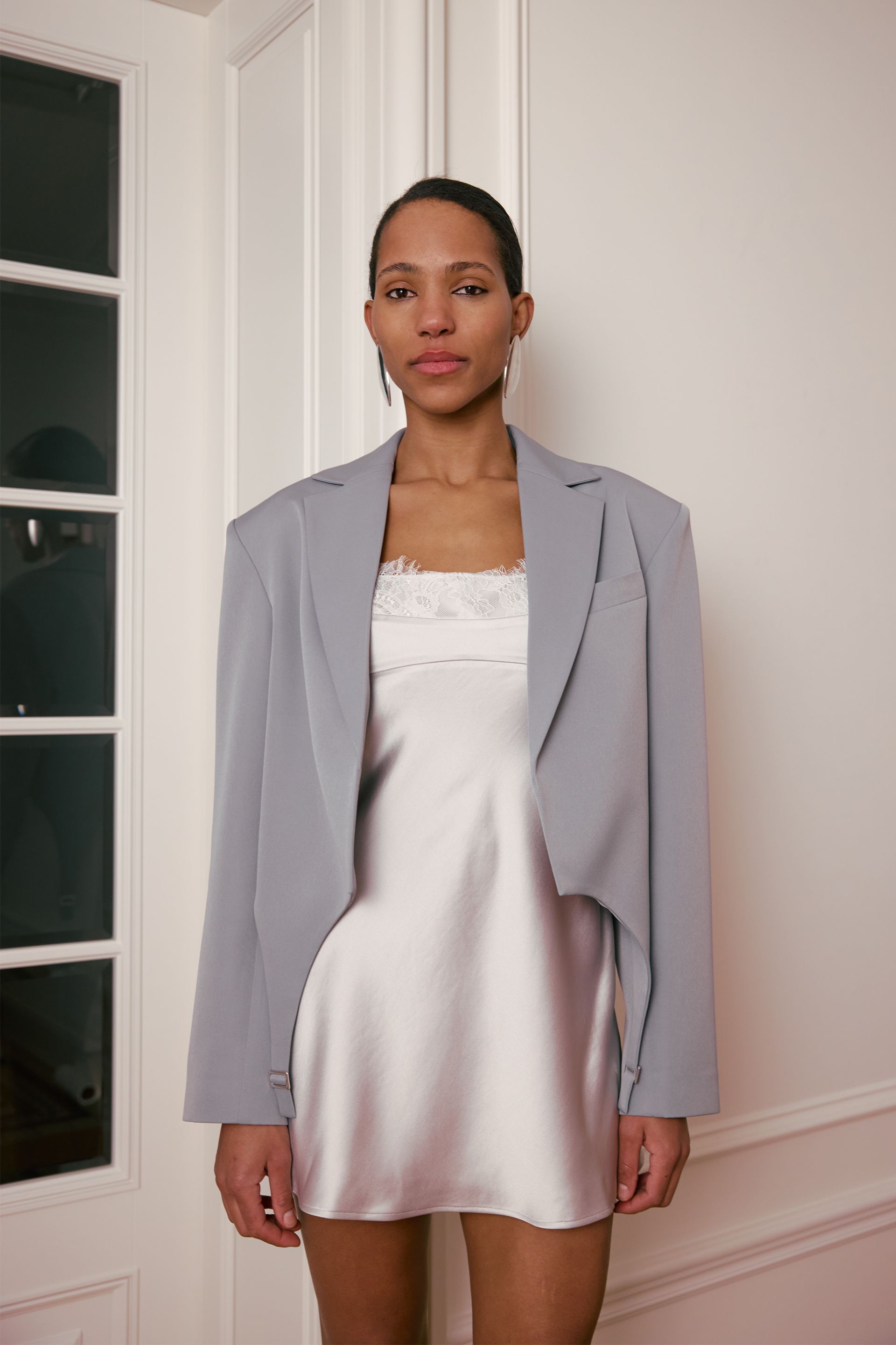 Жакет кроп із гартерами — м’яка структура з чіткою формою. Завдяки комбінації віскози, бавовни та еластану, модель комфортно сідає по фігурі та зберігає еластичність у русі. Витончена посадка та продумані деталі додають образу стриманої елегантності. Жакет легко комбінується з брюками, спідницями або базовим верхом, створюючи цілісний, збалансований силует.