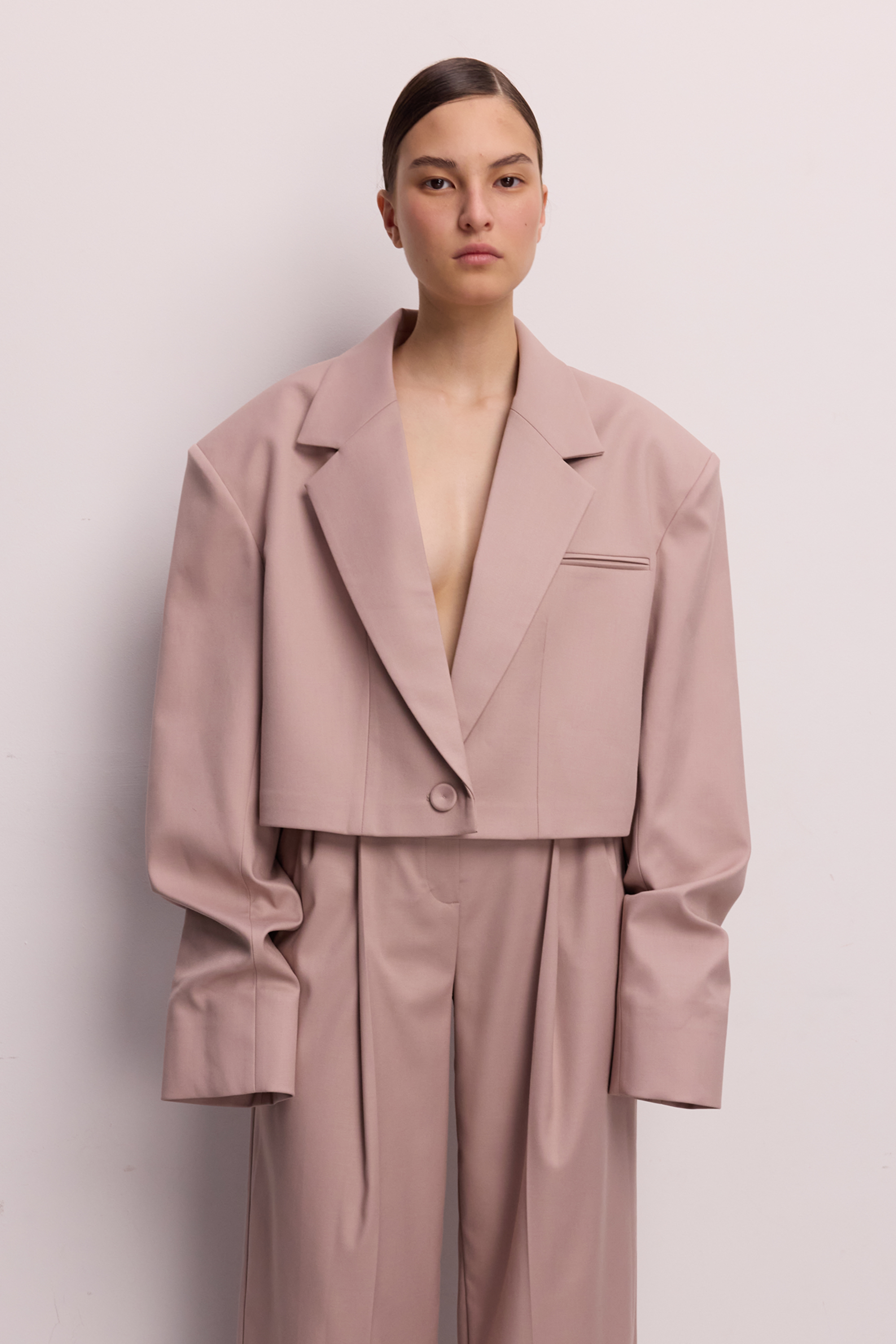 Жакет кроп із елегантною збіркою на рукаві. Виготовлений з міксу віскози та котону, що дарує відчуття комфорту та легкості, зберігаючи стильний вигляд. Ідеальний вибір для створення елегантних образів, які підходять як для офісу, так і для вечірніх виходів. Гармонійно поєднується з брюками, спідницями або класичними лонгслівами для завершеного вигляду.