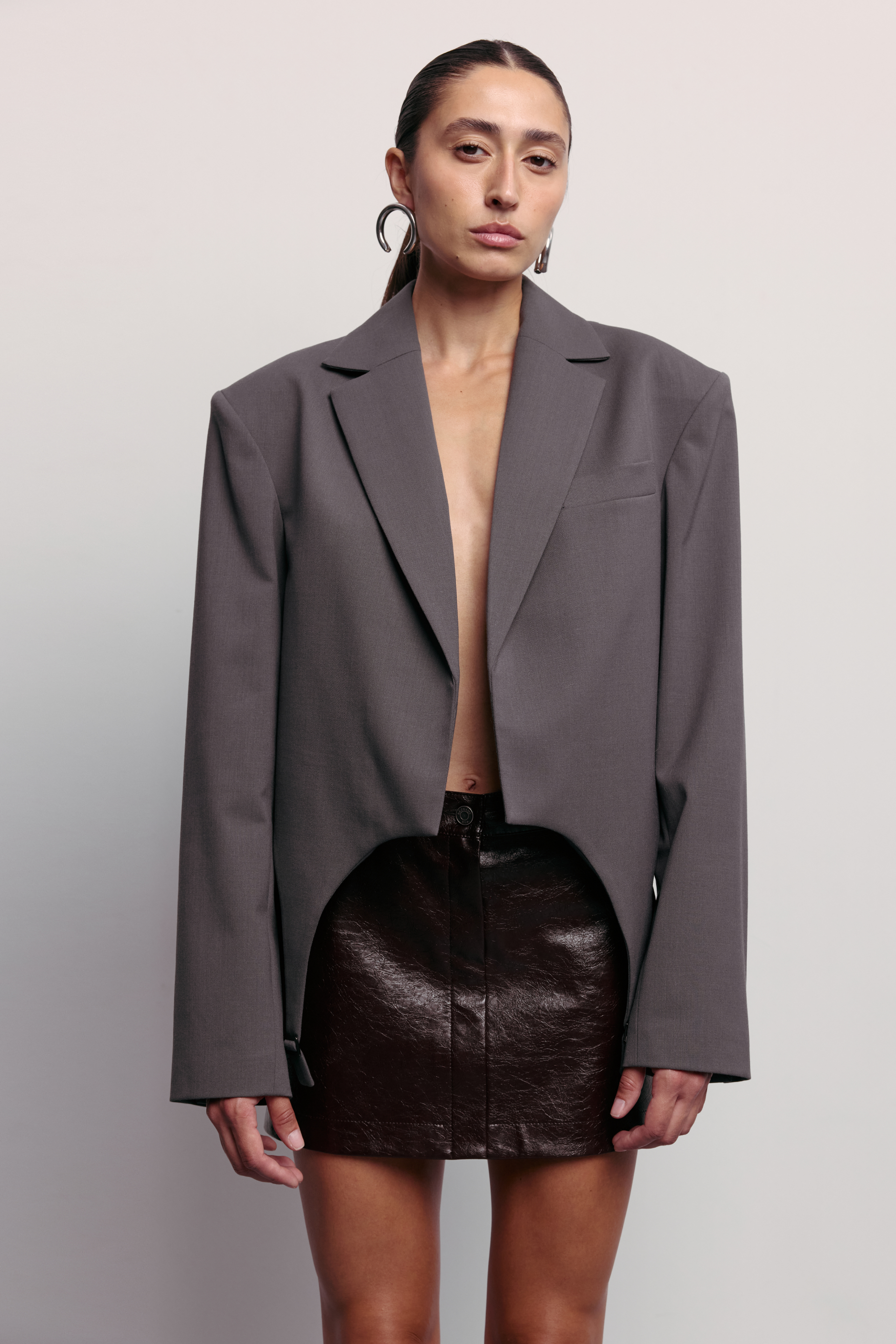 Жакет кроп із гартерами — акцент, що поєднує тепло virginwool та естетику впевненого мінімалізму. Завдяки вкороченому силуету й гартерним вставкам, жакет формує виразну лінію й додає образу графічної структури. Легко комбінується з брюками, спідницями чи лонгслівами, створюючи збалансовані сезонні поєднання.