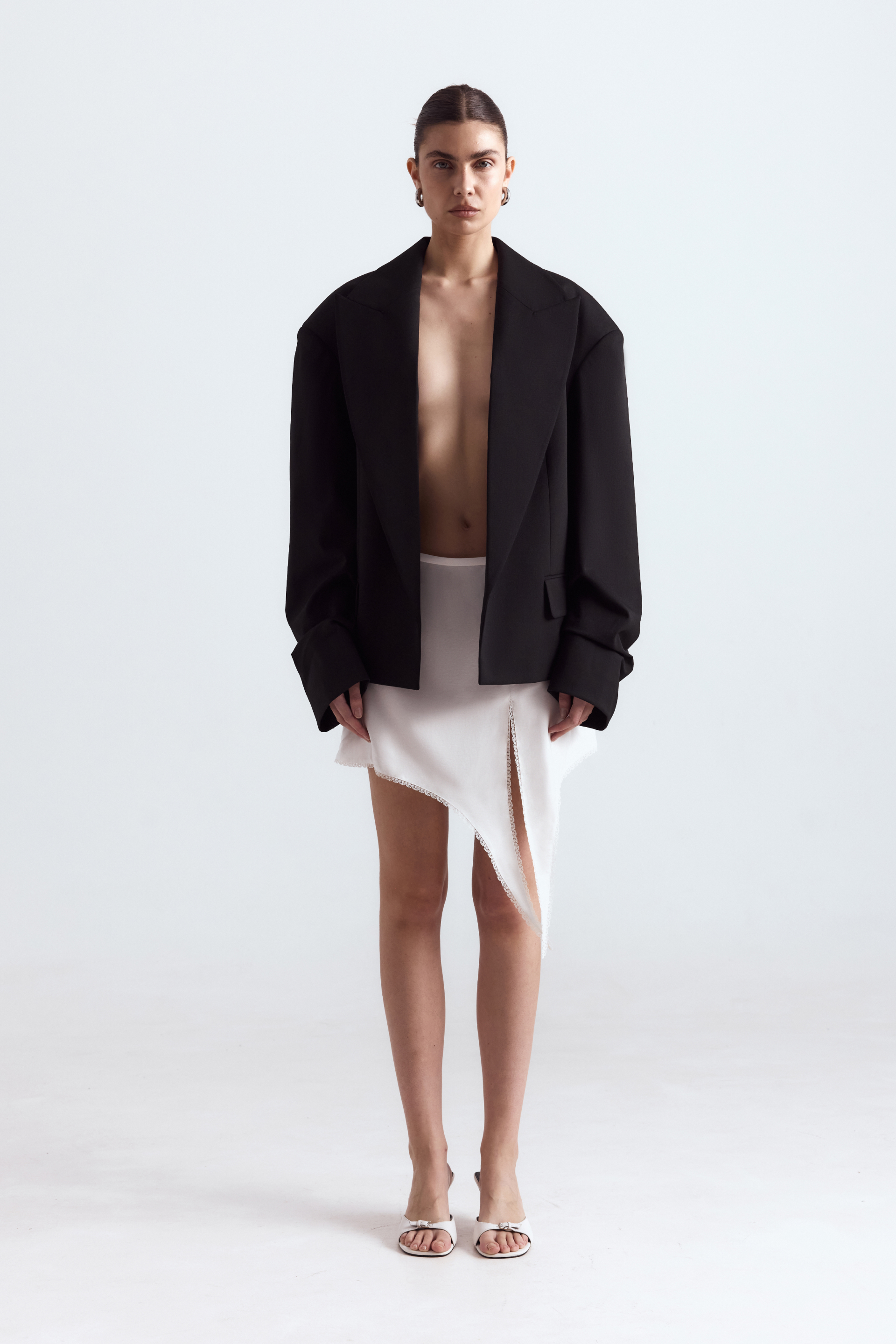Жакет оверсайз зі збіркою на рукаві. Виготовлений з virginwool, що забезпечує тепло і стиль. Ідеальний вибір для створення елегантних і комфортних образів в холодну пору року. Гармонійно виглядає з брюками, спідницями або лонгслівами для завершеного вигляду.