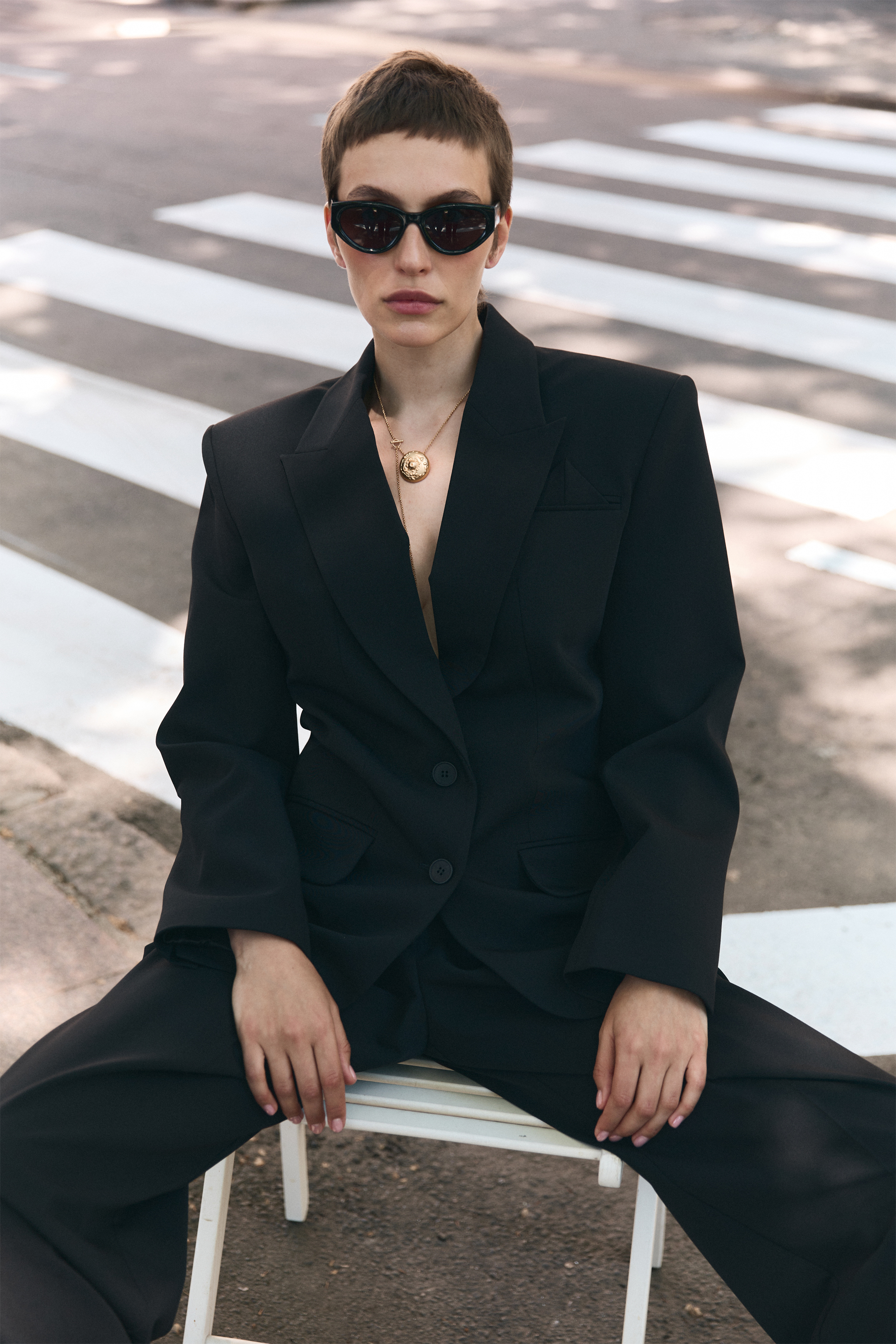 Однобортний приталений жакет — структура з м?яким контуром. Завдяки міксу віскози, бавовни та еластану модель поєднує комфорт і зібраність у лаконічному силуеті. Підходить як для ділових образів, так і для витончених щоденних поєднань. Добре поєднується з брюками, спідницями або базовими топами.
