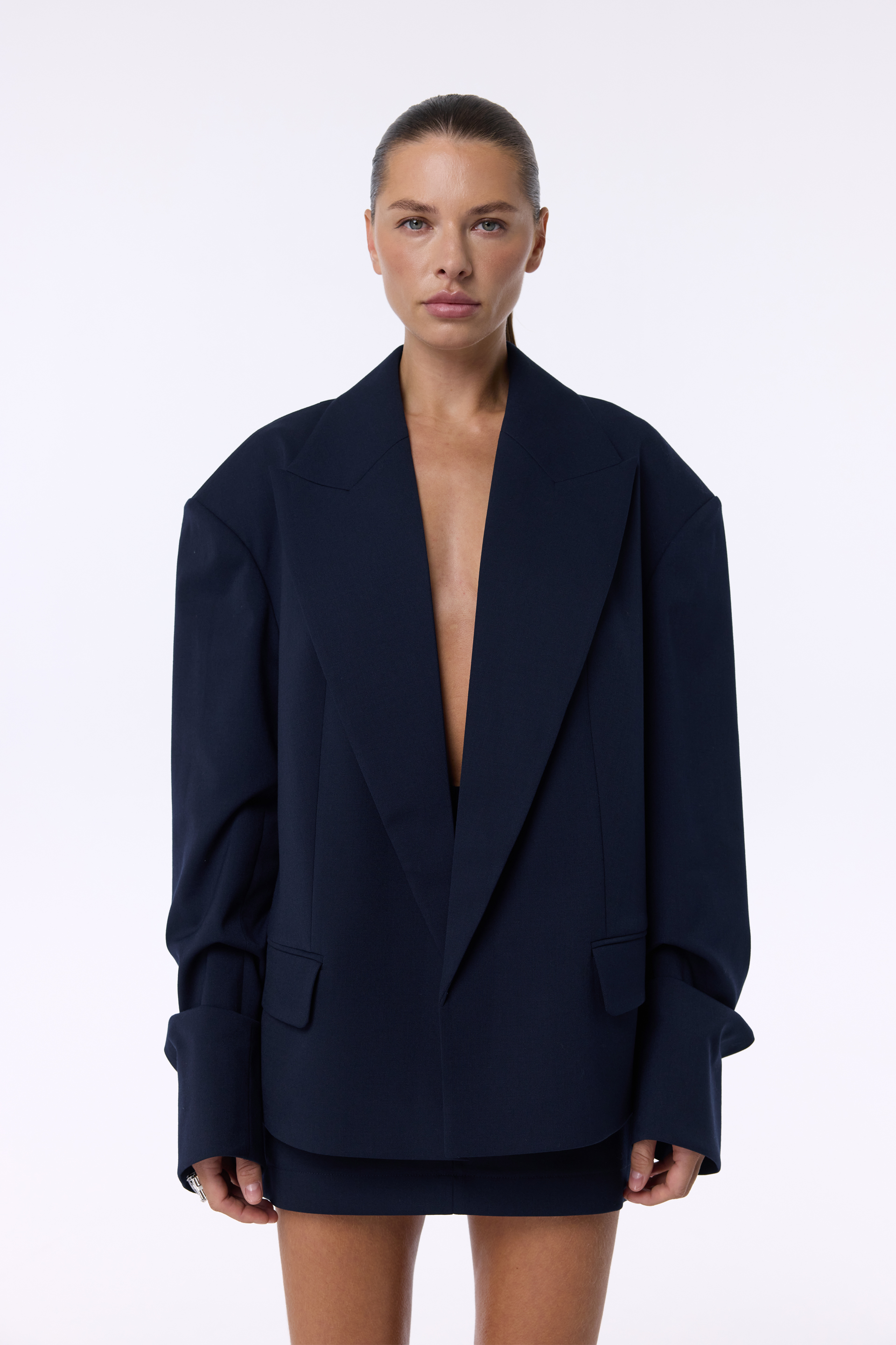 Жакет оверсайз зі збіркою на рукаві. Виготовлений з virginwool, що дарує тепло та стиль. Ідеальний вибір для створення елегантних образів у холодну пору року. Гармонійно виглядає з брюками, спідницями або лонгслівами для завершеного вигляду.