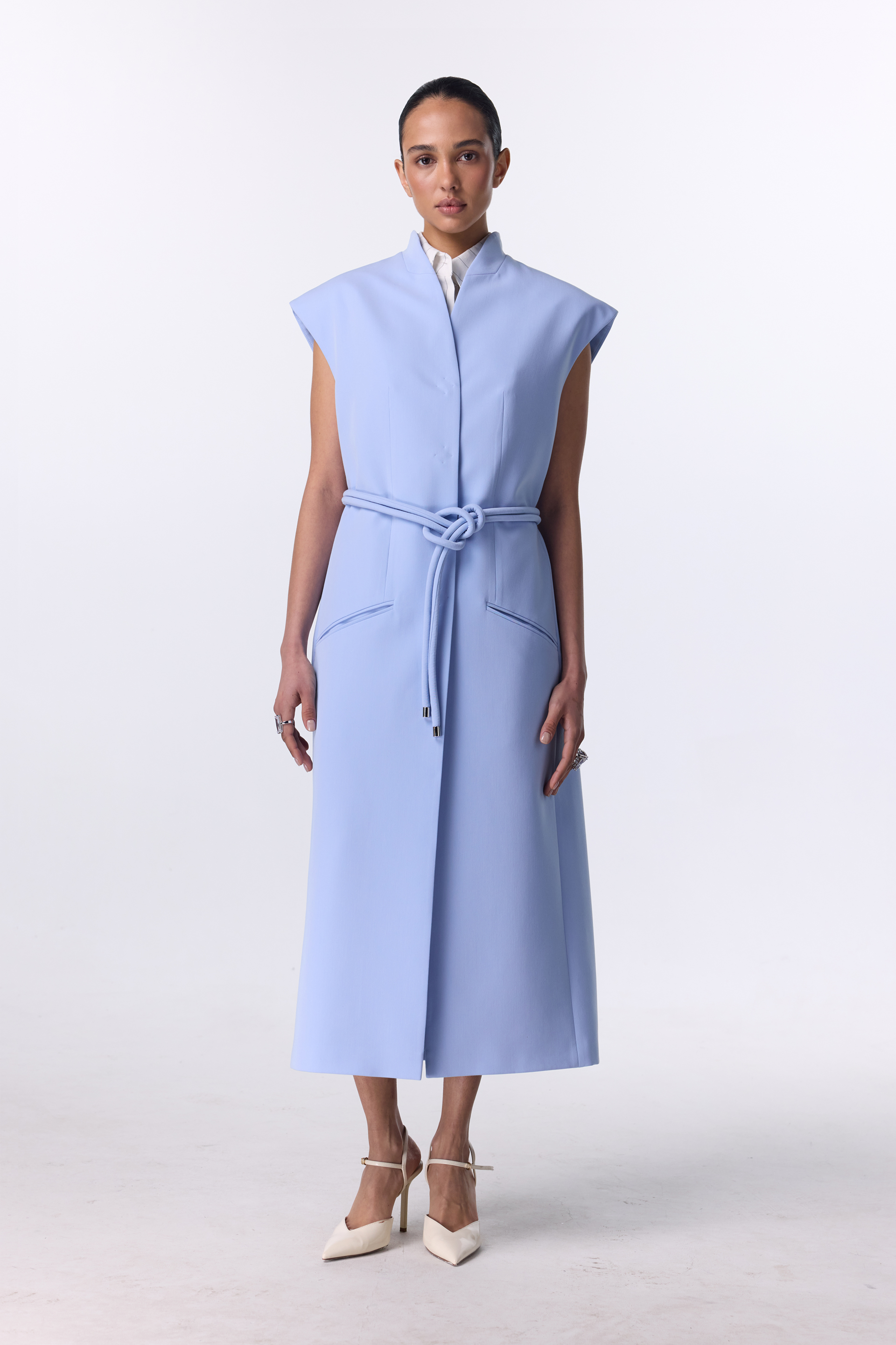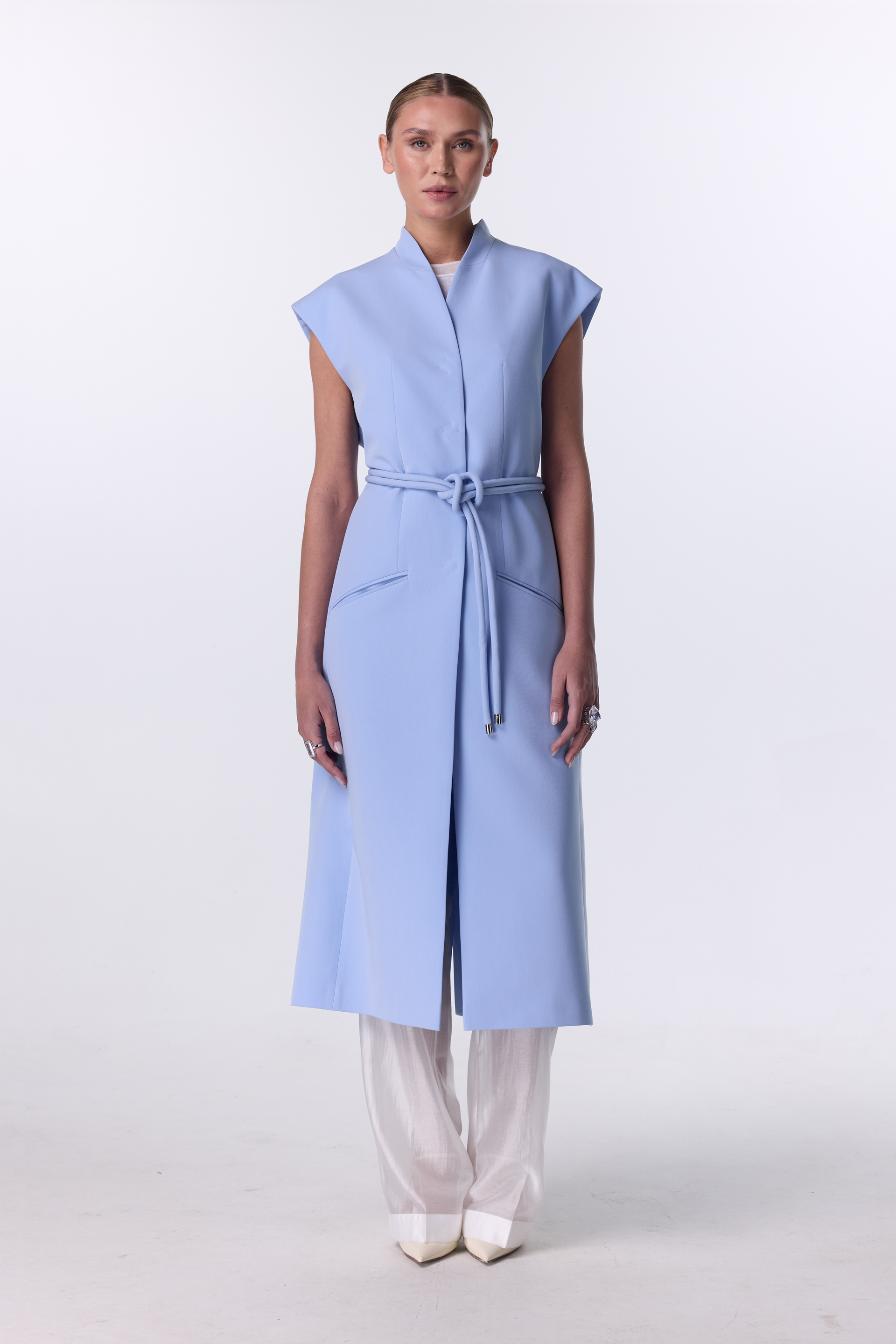 Жилет Shell — подовжена модель із чистими лініями та м’яко окресленими плечима, що формує впевнений, сучасний силует. Тканина з віскози з додаванням бавовни та еластану приємно лягає по фігурі й дозволяє легко регулювати посадку за допомогою пояса. Працює як самостійний акцент або як багатошаровий елемент — поверх топів, футболок чи лонгслівів, додаючи образу структури й глибини.