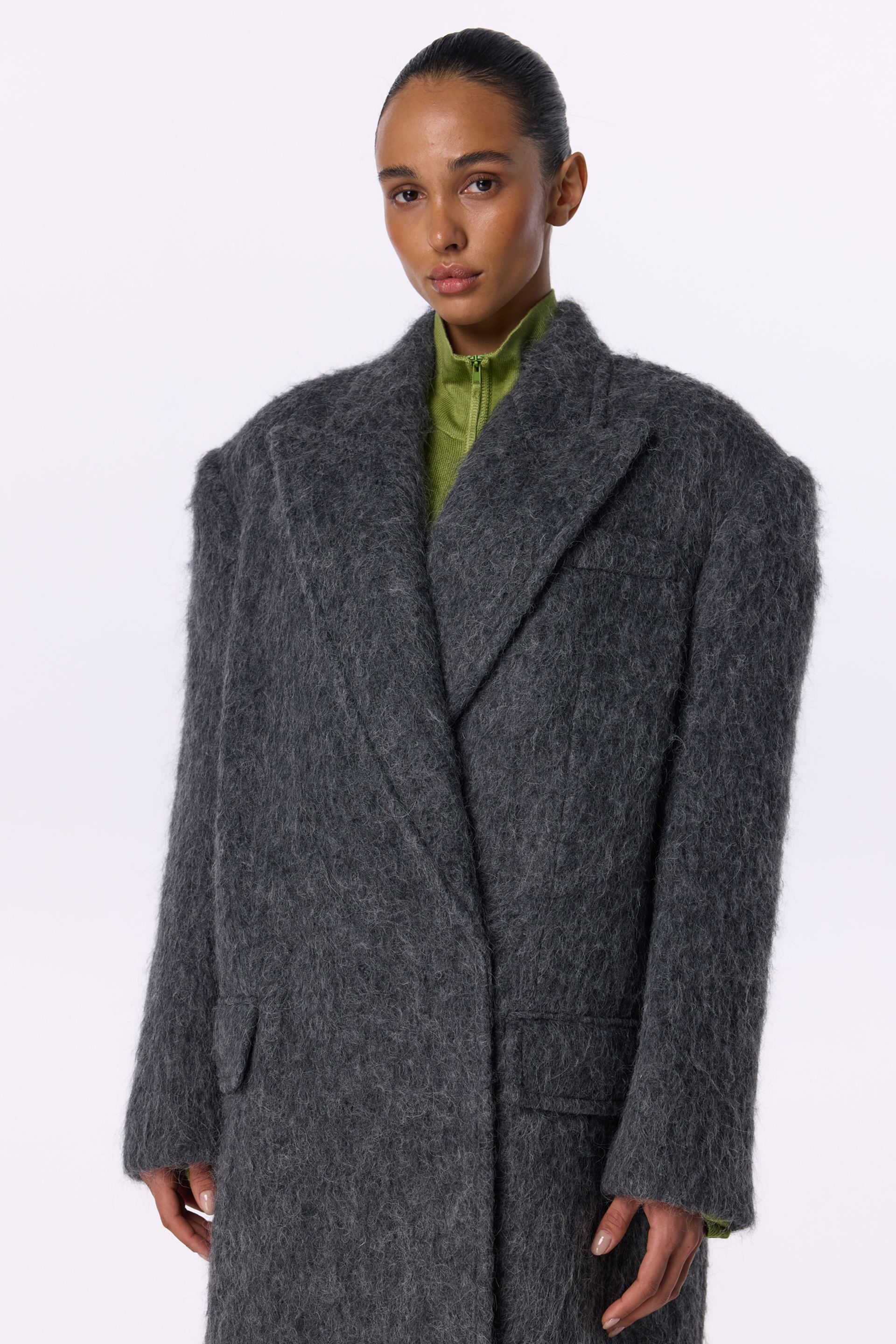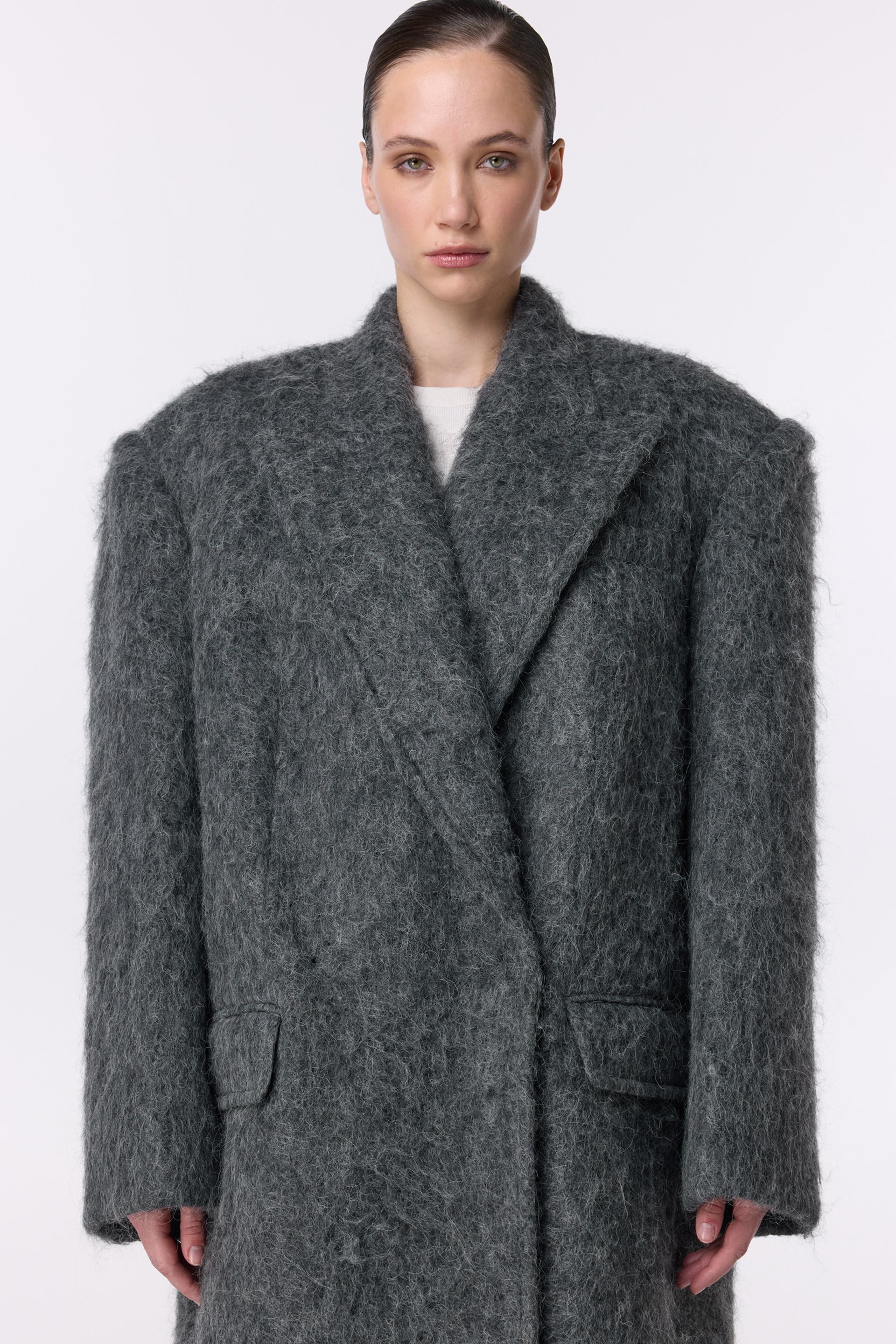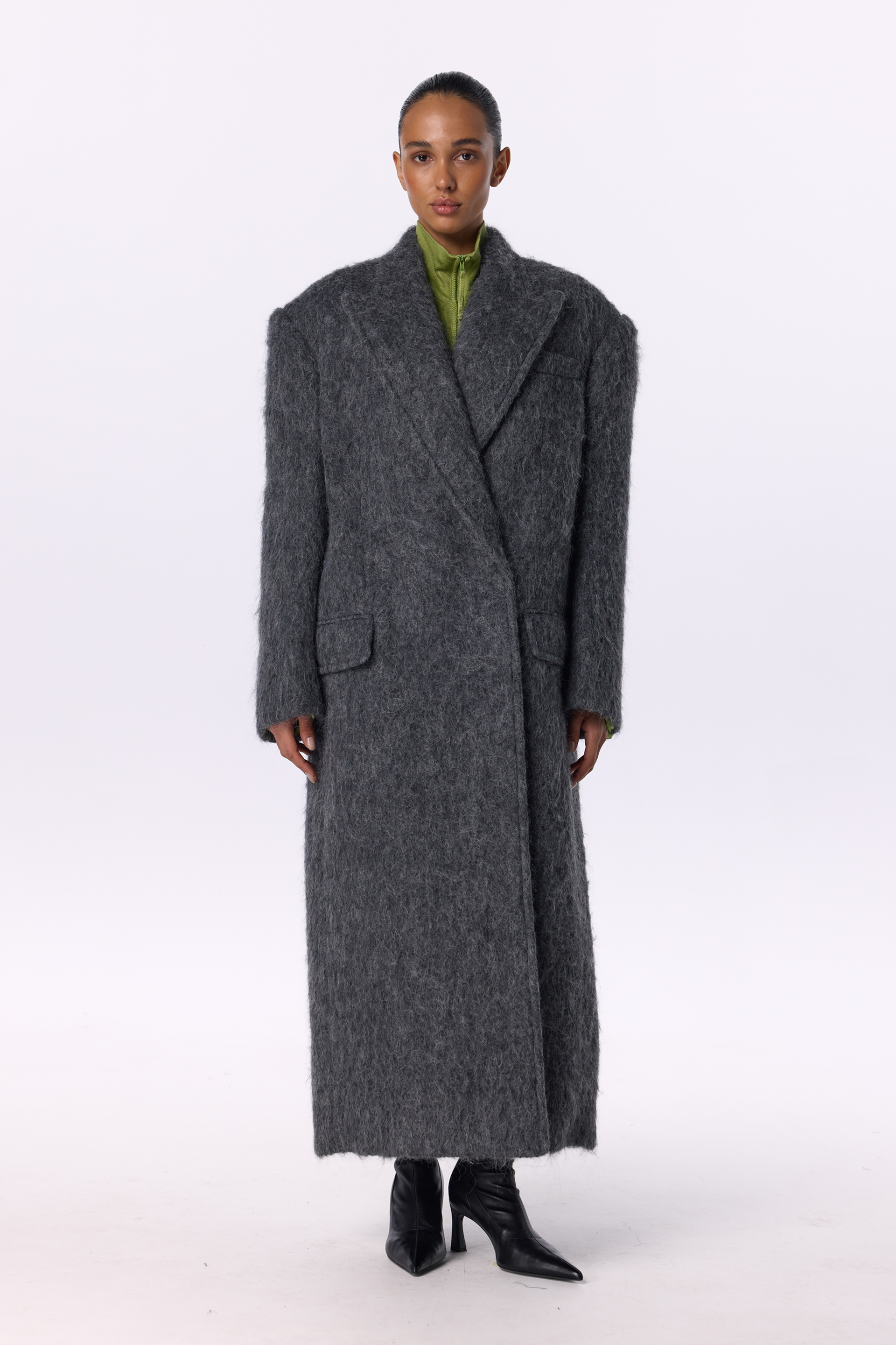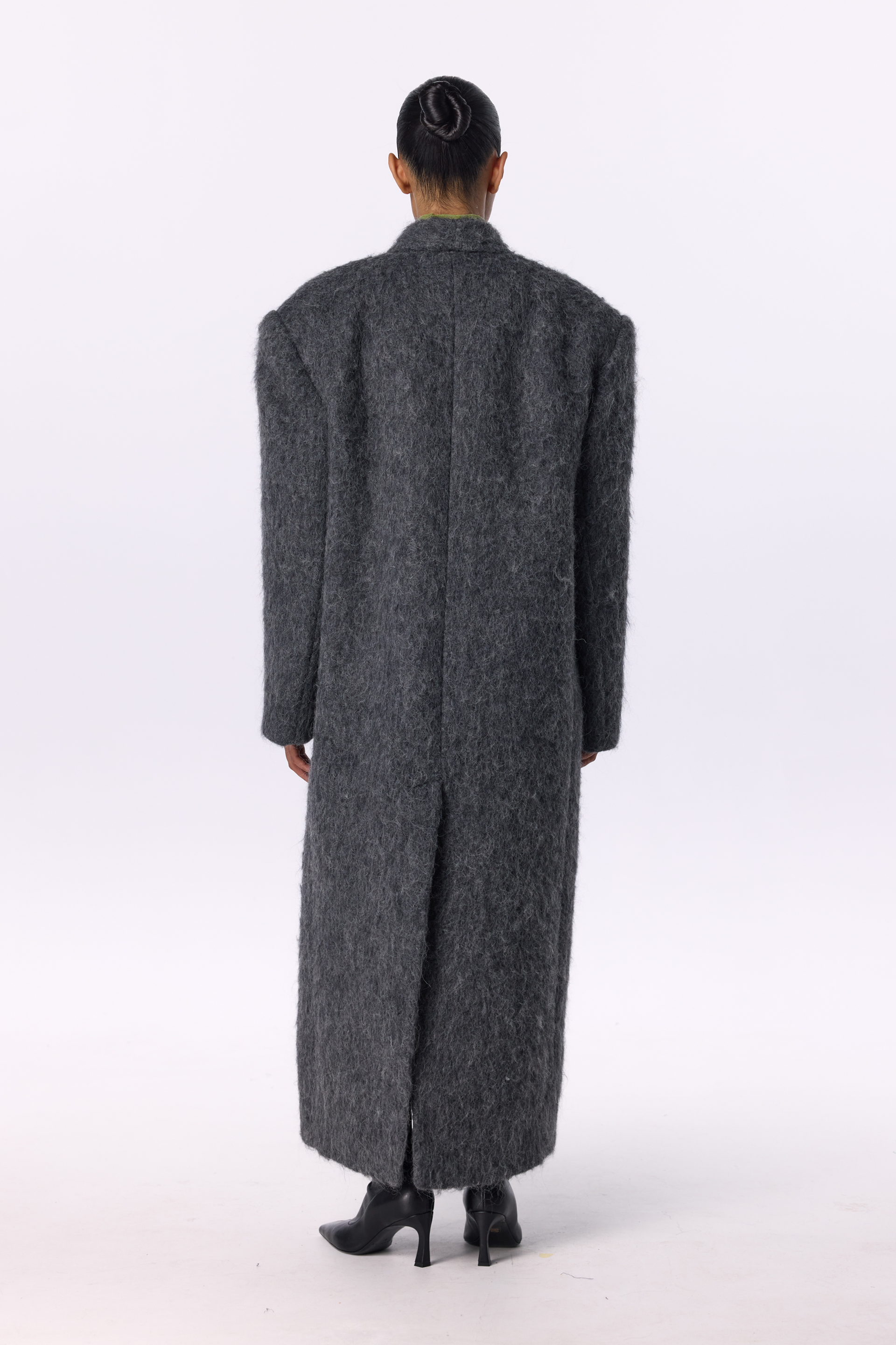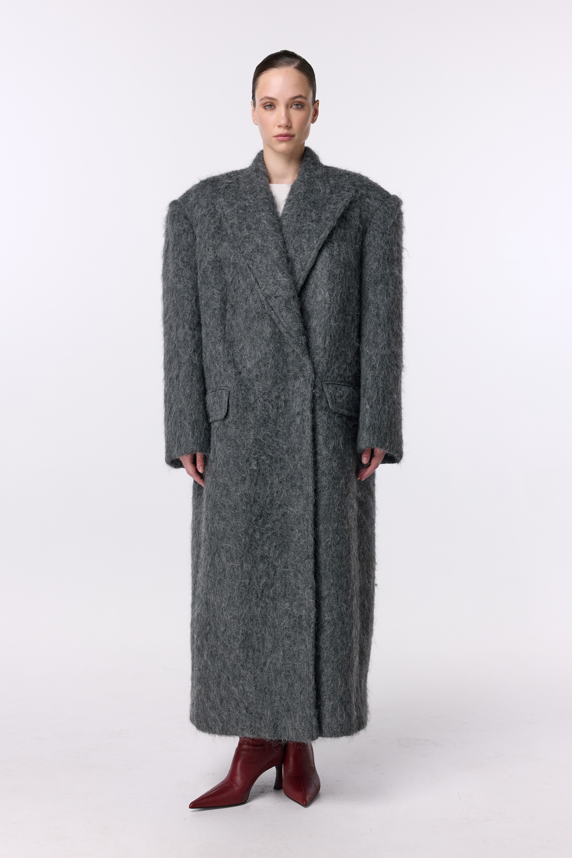 Довге пальто оверсайз прямого крою з акцентним плечем — естетика впевненого стилю та тепла. Виготовлене з міксу virginwool, мохеру та альпаки, воно забезпечує затишок і преміальну текстуру. Вільний силует у поєднанні з лаконічним дизайном додає образу сучасної елегантності. Ідеально підходить для створення стильних зимових аутфітів. Гармонійно поєднується з брюками або спідницями, доповнюючи будь-який гардероб. Пальто розраховане на комфортне носіння до -10°C.
